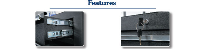 Heavy Duty Drawer Slides Each drawer is supported by heavy duty ball bearing drawer slides for smooth, reliable operation.